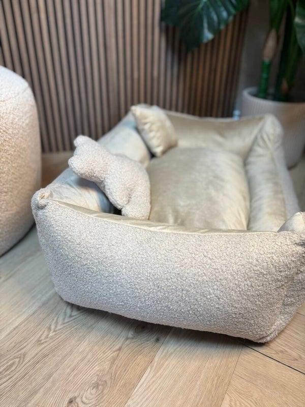 Luxury teddy & velvet bed champagne/white L